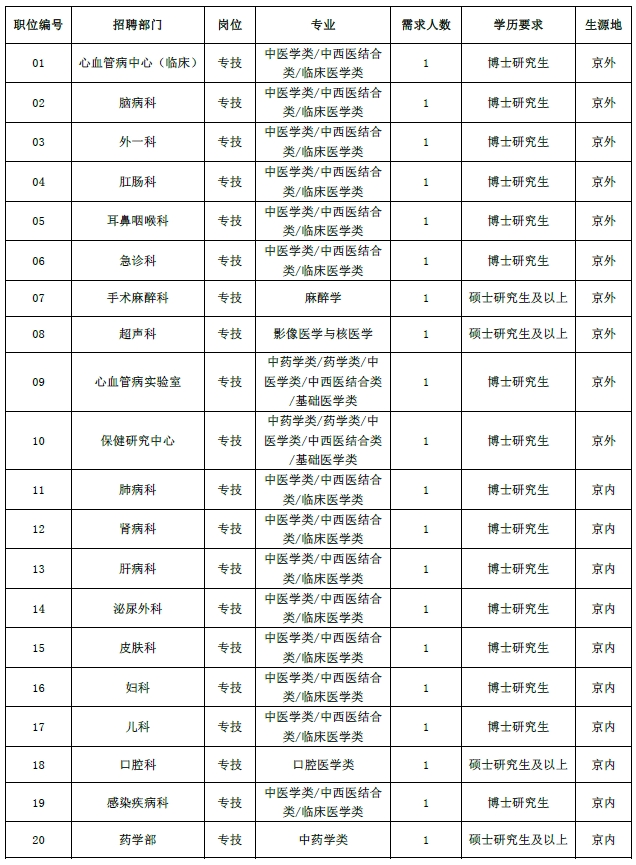 根據(jù)工作需要,2024年中國中醫(yī)科學院西苑醫(yī)院公開招聘應屆畢業(yè)生20名(提前批)?,F(xiàn)將有關事項公告如下: