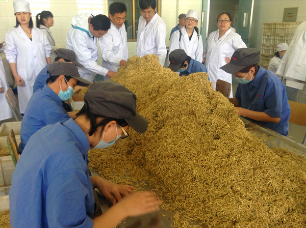 在會議室,大家認真聽取關于中藥飲片的報告,與工人師傅親切地交流探討。在中藥材倉庫,大家為龐大卻整理有序的原料中藥材而驚嘆不已;隨后走進工廠,觀看了目前國內(nèi)領先的專業(yè)檢測設備和儀器。在廠區(qū)工人師傅的指導下,實地熟悉觀察了藥廠中中藥材是如何變?yōu)樗幤返囊粋€全過程,深感高新技術的發(fā)展為現(xiàn)代中藥生產(chǎn)帶來的巨大便利。