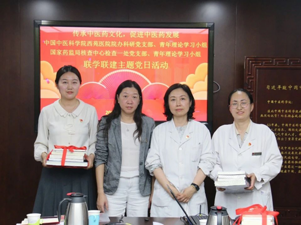 活動(dòng)中,雙方黨支部互贈(zèng)青年理論學(xué)習(xí)小組在政治理論、中醫(yī)藥傳承與創(chuàng)新、臨床試驗(yàn)管理與研究等學(xué)習(xí)書籍,希望青年在學(xué)習(xí)中筑牢信仰之基、在學(xué)習(xí)中走向具體實(shí)踐,為中醫(yī)藥的傳承與創(chuàng)新發(fā)展、為健康中國建設(shè)貢獻(xiàn)青春力量。