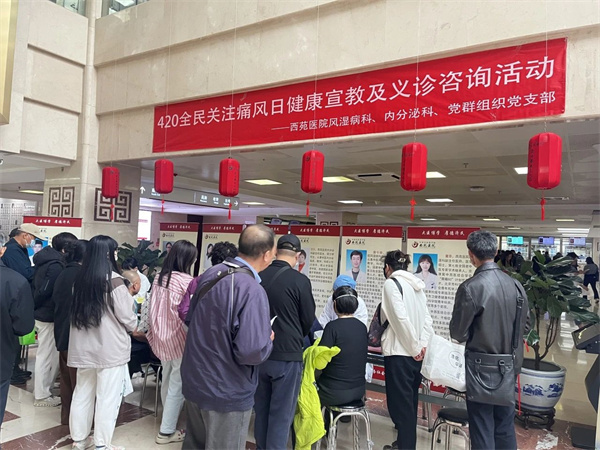 在第九個(gè)"全民關(guān)注痛風(fēng)日"之際,西苑醫(yī)院風(fēng)濕病科、內(nèi)分泌科、黨群組織黨支部以“控尿酸,防痛風(fēng),健康齊行動(dòng)”為主題,于2025年4月18日在門診樓仲景大廳聯(lián)合舉辦健康宣教及義診咨詢主題活動(dòng),幫助群眾解決健康困擾。