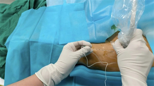 團(tuán)隊推行“術(shù)前超前鎮(zhèn)痛+術(shù)中精準(zhǔn)鎮(zhèn)痛+術(shù)后多模式鎮(zhèn)痛”的全程管理:術(shù)前通過髂筋膜阻滯預(yù)先阻斷痛覺傳導(dǎo);椎管內(nèi)麻醉提供滿意鎮(zhèn)痛效果,術(shù)畢即刻連接患者自控靜脈鎮(zhèn)痛泵。