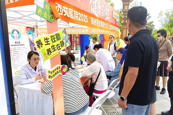 此外,在同慶街三山五園文化市集,西苑醫(yī)院還設(shè)置了專屬活動區(qū)域,進一步延伸惠民服務(wù)。西苑醫(yī)院專家現(xiàn)場坐診,為市民提供一對一的健康問題解答,針對常見疾病預(yù)防、慢性病管理等方面給出專業(yè)建議;專家?guī)Ь毎硕五\,市民們跟著專家的節(jié)奏認(rèn)真練習(xí),在一招一式中感受傳統(tǒng)養(yǎng)生功法的獨特魅力;文創(chuàng)展示展賣、DIY 中藥合香手串體驗區(qū)同樣人氣火爆,精美的中醫(yī)藥文創(chuàng)產(chǎn)品與特色互動活動,讓市民在逛市集的同時,也能深入接觸中醫(yī)藥文化,收獲別樣的健康體驗。
