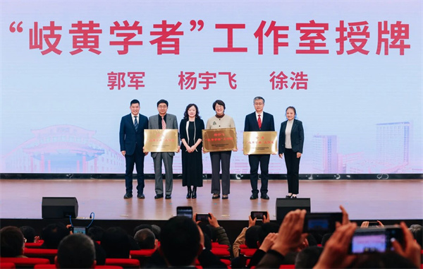 儀式上,相關(guān)領(lǐng)導(dǎo)為國(guó)家中醫(yī)心血管病臨床醫(yī)學(xué)研究中心蘇州分中心揭牌,楊宇飛、郭軍、徐浩“岐黃學(xué)者”工作室正式落戶蘇州。