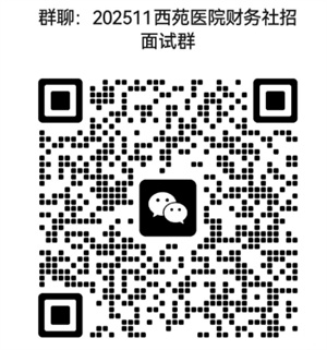中國中醫(yī)科學(xué)院西苑醫(yī)院財務(wù)處管理崗社會招聘工作人員面試擬于近期舉行,時間地點(diǎn)在面試微信群內(nèi)公布。請所有入圍面試的應(yīng)聘人員于2025年12月30日中午12:00前掃描下方二維碼進(jìn)入面試群,查看群公告并按要求完成相關(guān)準(zhǔn)備工作(后附入圍面試名單)。
