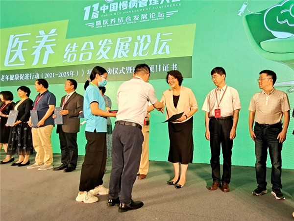 CSDOR楊宇飛主委主持的《腫瘤康復(fù)學(xué)科建設(shè)》和其他15項(xiàng)第一批立項(xiàng)項(xiàng)目負(fù)責(zé)人共同參與項(xiàng)目啟動(dòng)儀式。國(guó)家衛(wèi)生健康委員會(huì)能力建設(shè)與繼續(xù)教育中心資格認(rèn)證處處長(zhǎng)宋仙寶為楊宇飛主委頒發(fā)《老年健康促進(jìn)行動(dòng)(2021-2025年)》啟動(dòng)項(xiàng)目證書(shū)。