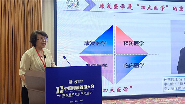 7月16日下午,楊宇飛主委主持中國(guó)老年學(xué)和老年醫(yī)學(xué)學(xué)會(huì)第11屆中國(guó)慢病管理大會(huì)暨醫(yī)養(yǎng)結(jié)合發(fā)展論壇并作題為《腫瘤康復(fù)學(xué)科建設(shè)的理論創(chuàng)新和實(shí)踐體會(huì)》的主旨發(fā)言。她指出:康復(fù)醫(yī)學(xué)與預(yù)防醫(yī)學(xué)、臨床醫(yī)學(xué)和保健醫(yī)學(xué)并稱為“四大醫(yī)學(xué)”,但不管是在腫瘤學(xué)、還是康復(fù)學(xué)中均沒(méi)有腫瘤康復(fù)這個(gè)學(xué)科,腫瘤康復(fù)具有流行病學(xué)數(shù)量大、社會(huì)經(jīng)濟(jì)負(fù)擔(dān)重的顯著特點(diǎn),腫瘤康復(fù)學(xué)科建設(shè)迫在眉睫。她表示要在中國(guó)老年學(xué)和老年醫(yī)學(xué)學(xué)會(huì)的領(lǐng)導(dǎo)下,依托腫瘤康復(fù)分會(huì),以腫瘤康復(fù)基地為載體,聯(lián)合醫(yī)院、企業(yè)的醫(yī)療技術(shù)、學(xué)術(shù)力量和產(chǎn)業(yè)投資,將現(xiàn)代康復(fù)治療技術(shù)與傳統(tǒng)中醫(yī)藥相結(jié)合,建立中國(guó)特色腫瘤康復(fù)學(xué)科,為建立中國(guó)特色健康保障體系奠定基礎(chǔ)。