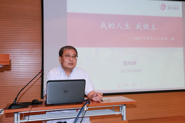 張允嶺書記以“我的人生我做主”為題為新職工作“職業(yè)生涯第一課”,由此開啟了為期一周的新職工崗前培訓(xùn)。張書記從西苑醫(yī)院成立與歷史沿革展開,回溯了西苑醫(yī)院的光輝歷史和深厚的文化底蘊(yùn),明確黨委領(lǐng)導(dǎo)下醫(yī)院高質(zhì)量全面發(fā)展的奮進(jìn)征程。以弘揚(yáng)西苑偉大抗疫精神為切入點(diǎn),勉勵新職工講政治、有信念,講紀(jì)律、守規(guī)矩,勇于擔(dān)當(dāng)、奮斗奉獻(xiàn),把“青蒿素”精神作為價值追求,踐行“大醫(yī)博學(xué)、厚德濟(jì)民”的院訓(xùn)精神,將“奮斗奉獻(xiàn)”精神貫穿于職業(yè)生涯全過程。他鼓勵新職工要立足崗位做合格的醫(yī)務(wù)工作者,合理規(guī)劃自己的職業(yè)生涯,以國家中醫(yī)藥發(fā)展戰(zhàn)略為導(dǎo)向,與醫(yī)院“十四五”發(fā)展目標(biāo)同步,擔(dān)負(fù)起健康中國的使命,為西苑醫(yī)院的發(fā)展作出新貢獻(xiàn)!