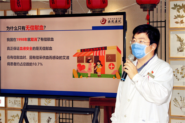 近日,中國中醫(yī)科學(xué)院西苑醫(yī)院血液科黨支部以“匯聚青春,無償獻(xiàn)血傳愛心”為主題開展科普活動。血液科黨支部書記許勇鋼、血液科副主任唐旭東、護士長馬蕓帶領(lǐng)醫(yī)護團隊為廣大患者提供了關(guān)于獻(xiàn)血、輸血、貧血相關(guān)內(nèi)容的知識講解。